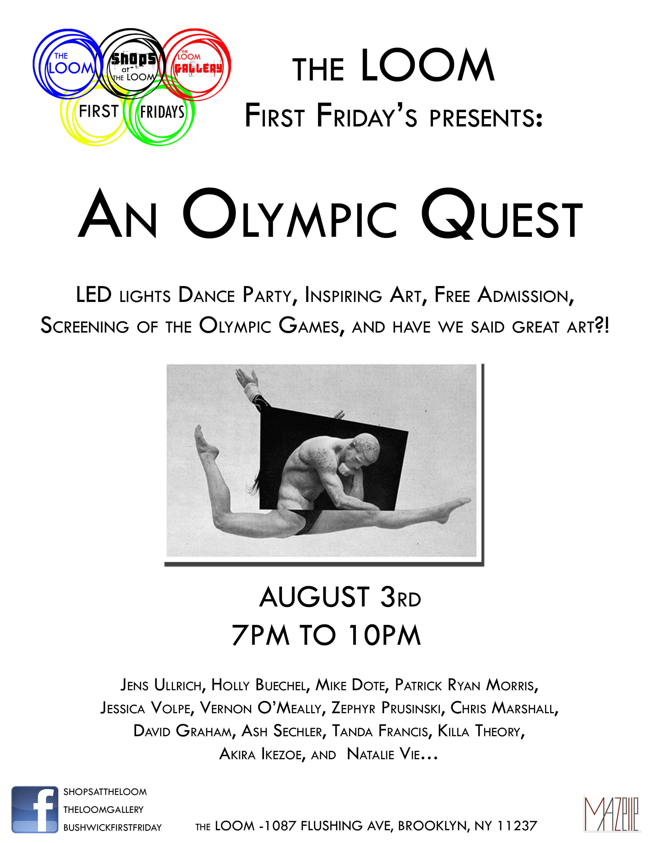 On August 3rd, Speed of Fencing will be playing! Curated by my teammate and wonderful friend, Natalie Vie, this week’s Art Walk focuses on art related to the Olympics, sports, and movement. Bushwick First Fridays Art Walk is an open studio, open gallery art walk that occurs on the First Friday of every month in the neighborhood of Bushwick in Brooklyn, New York.